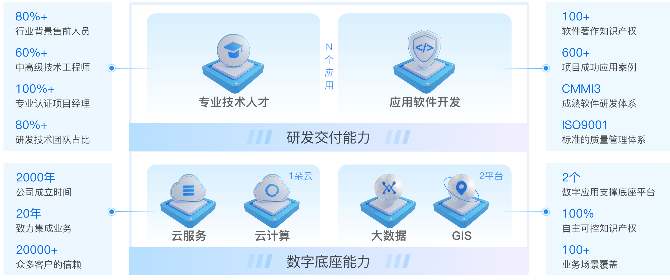 聚焦環保、水務、住建、城管、交通行業,提供整體信息化解決方案并通過軟件應用開發支持進行實施落地。